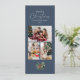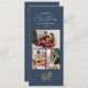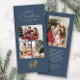 Ett enkelt och chic dammblått jullokerkort med helgdag som visar vattenfärgen gräs lämnar med säsong, bär och modern elegant typografi på en rik dammig blå bakgrund. En 3-fotokollage är längst fram för att du ska kunna anpassa dig med en rad familjefotografier och din familj namn, och ytterligare ett utrymme på motsatt sida för ett gruppfoto plus utrymme för att lägga till ditt eget personliga helgdag till dina nära i julets julhelg.