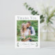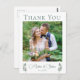 En elegant grön kalligrafiskrift med två akvarell eukalyptusblad på vardera sidan längst ner för att dekorera detta vackra nygifta fototackkort för ett höstbröllop. Ett vackert modernt kvällsbröllopskort för tack för en trädgårdstillställning på natten med ert parfoto under den enkla, chic typografin.
