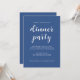 Den enkla och chic middagsinbjudan har vit snyggt, kalligrafi av elegant och modern typografi på en klassisk blå bakgrund. Lägg bara till din middag party-information. Enbart designad för dig av Lycklig Dolphin Studio. Om du behöver hjälp eller matchande produkter kontaktar du oss via vår chatta för butiker!