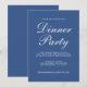 Den enkla och chic middagsinbjudan har vit snyggt, handskriven kalligrafi för elegant och modern typografi på en klassisk blå bakgrund. Lägg bara till din middag party-information. Enbart designad för dig av Lycklig Dolphin Studio. Om du behöver hjälp eller matchande produkter kontaktar du oss genom vår chatta.
