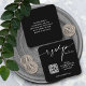 De här moderna svarta och vita utrymmeskorten är ett enkelt sätt för gästerna att få OSA på din webbplats. Om du vill skapa din egen webbplats QR-kod anger du bara dess URL i textrutan när du anpassar korten.