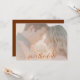 En mjuk rosafärgad överlagring gör denna enkla, moderna och otvungna chic bröllopsfoto spara datum till en trevlig val för ett höstbröllop eller för alla par med rosa, mjuk rosa, monokromatisk beige eller dammig rosa färgschema. En rostbrun bakgrund på baksidan ger en fin kontrast till designen.