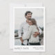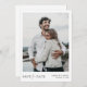 Den här enkla, moderna fotokortsmallen i snyggt innehåller ditt namn och datum under fotot tillsammans med ett "spara datumet"-meddelande som medföljer en slående blandning av två olika typsnitt, med "the" i ett lätt, flytande skript mellan resten av meddelandet, som finns i övre fodral med ett djärvt och skarpt utseende. Det här alternativet för att spara datumskriptet i svart är en bild och kan inte ändras. Du kan välja att ändra teckensnitt, interpunktion eller färg som används för olika andra inslag av den här designen framifrån och/eller bakåt. Du kan t.ex. välja att ge ett visst färg till viss text eller att ta bort något eller ändra en text fält helt och hållet med ett annat meddelande. Eller så kanske du föredrar en annan formulering för en text, till exempel att ändra "är gifta sig" till "är gifter sig" osv. På båda sidor har vi satt bakgrunden som öppen, så att färg i pappra helt enkelt blir som färg. Du kan välja ett färg för bakgrunden om du vill. Vi har valt något mjukt svart för namn och dejt på framsidan och en grått-ton för texten på baksidan, men du kanske föredrar ett annat färg. Använda den intuitiva designen verktyg, ditt favoritfoto och din inspiration för att göra den här chicen till en modern minimalistisk mall för bröllop spara datum inbjudan unik!