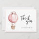 Tack för att du har ett kort med en söt kanin med vattenfärg i en luftballong och ömtåliga blommor på baksidan. En enkel elegant i rosa baby.