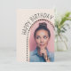 De här chicen och de enkla fotofödelsedagsinbjudningarna innehåller ett bågformat foto, polka dots och anpassade-skript namn och text på framsidan. Ett underbart sätt att visa personen som firar sin födelsedag. Klicka på knappen Anpassa för att anpassa den här designen.