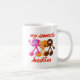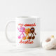 Fira de vänner som följer med dig genom varje äventyr. Den här lekande vita keramiska mugg har tre fina kanditecken - rosa, karamel och chokladbrun - som håller händer under den ljusröda frasen "mina söta besties".