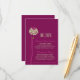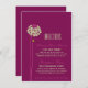 Dessa bröllopsinbjudningsbilagor ger gästerna vägbeskrivning till kyrkan och ceremonin, med höga, vackra dahlior med en förtjusande mängd kronblad på smala, ståtliga stjälkar, i nyanser av mjukast grönt, livfullt vårgrönt och fuchsia rosa mot en djup aubergine-lila bakgrund. Formuleringen av vägbeskrivningen är helt anpassningsbar; i omväxlande bröllopsskrift, klassiska blockbokstäver och ett högt modernt accenttecken.