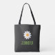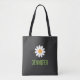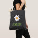 Denna moderna handväskan har en enkel vit tusenskönsblomma med en gul mitt och ett personligt namn i grön text. Denna minimalistiska design kommer att vara en bra present för familj, vänner, kollegor, idrottslag och mer. Anpassa texten för att passa dina behov.
