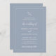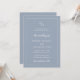 Traditionell bröllopsinbjudan med en enkel design med ditt monogram tillsammans med accentord i ett elegant skript över en dammig blå bakgrund. Denna klassiska och eleganta bröllopsinbjudan är perfekt för ett formellt bröllop på våren eller vintern.