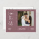 Denna "save the date"-förlovningsinbjudan presenteras på ett postkort med en elegant kalligrafi och en enkel sans serif-typografi på en dammig lila bakgrund med ett foto och QR-kod för en ren minimalistisk och modern look, som är ett vackert sätt att informera om din kommande bröllop. Enkelheten i denna design lägger till en touch av elegans till era bröllopskort. Det fungerar bra med många bröllopsteman och är definitivt ett bra komplement till er bröllopsfest. Anpassa bara namnen och formuleringen i några enkla steg och anpassa inbjudan postkortet med ert foto av det lyckliga paret och byt ut QR-koden mot din egen på baksidan för att ge ditt postkort en trevlig personlig touch.