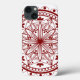 Den här telefonväskan har en enkel manaladesign av linjer, kurvor och former i djupt rött på en vit fält.