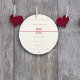 En enkel och elegant utformning med den klassiska Dubblan Happiness-symbolen i rött på en elfenbensbakgrund.