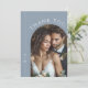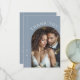 Enkel Dusty Blue Monogram Bröllop Photo Tack Kort