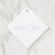 Elegant och snyggt bröllop gynnar märkre. Denna "Tack"-märkre för gåva har en enkel och minimal ljusblå "tack"-text längst fram och ett par namn längst bak i en uppsättning contemporary typsnitt mot en vit bakgrund för båda sidor.