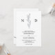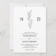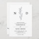 Minimalistiskt svart och vitt bröllopsinbjudan, med din monogram initialer och handillustrerade botaniska blad längst upp