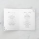 Monogrammed initialer och elegant-hand illustrerade botaniskt löv, din händelseinformation i elegant-skript och klassiskt teckensnitt, enkelt och lyxt. Underbara svarta och vita program för det moderna klassiska bröllop, rent formellt bröllop, elegant botaniskt trädgårdsbröllop. Visa alla matchande delar i samlingen.