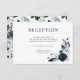 En marinblå blomsterinspirerad boho-mottagningskort, där du kan ange detaljer om aktiviteter efter bröllopet.