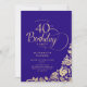 Enkel inbjudan till 40-dagars festfest i lila och guld i elegant. Klassdesign med ro, faux guld-folie och typsnitt för typsnitt. Trendig inbjudan-kortets perfekt för en snyggt kvinnlig dag firande. Anpassa med dina egna detaljer. Kan anpassas till vilken ålder som helst. Skrivna Zazzle-inbjudningar eller digital utskrivbar mall för omedelbar nedladdning.