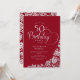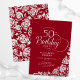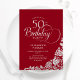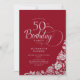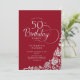 Enkel elegant 50 födelsedagsfest inbjudan i rött och silver. Klassdesign med ro, faux silver-folie och typsnitt för typsnitt. Trendig inbjudan-kortets perfekt för en snyggt kvinnlig dag firande. Anpassa med dina egna detaljer. Kan anpassas till vilken ålder som helst. Skrivna Zazzle-inbjudningar eller digital utskrivbar mall för omedelbar nedladdning.