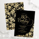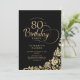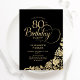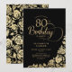 Enkel elegant 80 födelsedagsfest inbjudan i svart och guld. Klassdesign med ro, faux guld-folie och typsnitt för typsnitt. Trendig inbjudan-kortets perfekt för en snyggt kvinnlig dag firande. Anpassa med dina egna detaljer. Kan anpassas till vilken ålder som helst. Skrivna Zazzle-inbjudningar eller digital utskrivbar mall för omedelbar nedladdning.