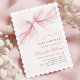En Enkel och Elegant Båge Bebis Shower Inbjudan med en mjuk rosa bågdesign och förfinad typografi.