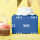papper förpackning av elegantens blå och vita monogram. Perfekt för presentemballering. Studenten, bröllop, födelsedag. Anpassa med initialerna.