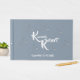 Enkel Elegant Dammig Blå och Vit Bröllops- Gästböcker