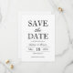 Enkel text och elegant bröllop spara datum i svartvitt med en blandning av skript och serif typsnitt. Anpassa den med din egen text. Lägg till en bakgrund färg längst fram eller bakåt genom att klicka på knappen för att redigera designen. Kontrollera om samlingen innehåller matchande svit-pappersprodukter.