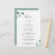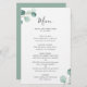 Elegant bröllop-menyn med en enkel design med vattenfärgade, färgade eukalyptus grey i det övre lämnat hörnet och i det nedre hörnet av högerna. Baksidan är en matchande skuggning av medelstor grönt. Den här orustiska botaniska bröllop-menyn med en modern tvist är perfekt för vår eller sommar-bröllop och trycks på en platt lakan av papper för ett budgetvänligt alternativ.