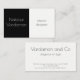 Affärskortets yta är uppdelad i svartvitt. Namn på den svarta halvan, yrket på den vita halvan. Företag namn, motto och kontaktinformation på baksidan. Helt anpassade. Du kan ändra allt och göra ett personligt kort.