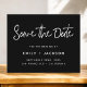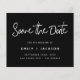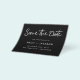Behåll Bröllop-vykortet för budgetsvart modern och Elegant med minimalistisk hand. Datuminbjudan innehåller en modern handskriven skripttypografi med en chic och enkel design som du kan lägga till ditt anpassade förlovning-fotografi bild till.