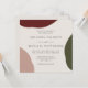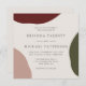 Enkel och elegant med konstnärlig contemporary, den här moderna bröllopsinbjudan har en abstrakt av burgundi, terra-cotta och jägare-grönt runt eleganten. Färg-programmet är ett bra val för fallbröllop eller bröllop under svalare tider på året. Elegantens typsnitt parar upp texten på vackra stil. Anpassa exempeltexten med information om bröllop.