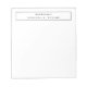 Från skrivbordet anteckningsblock. Funktioner namn i kompletterande typografi på en solid vit bakgrund. Massor av skrivutrymme för anteckningar, påminnelser och listor.