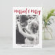 dina nyheter i lycklig den här julhelgen med elegantens enkla helgdag med ""Gift & Merry" i en chic med djup röd typografi. Vänden är i koordinationsrött med vitt streck. Anpassa med ditt eget favoritfoto.