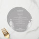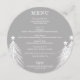 En elegant silvergrå rund middagsmeny med vita julgranar presenterar dina meny detaljer i chic bokstavsstil. Perfekt för en högtidlig julfest eller någon speciell händelse med en sittande middag.