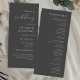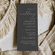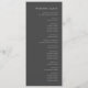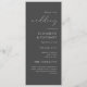 Det här enkla elegant bröllop-programmet har vit text som är anpassad till högerna på en grått-bakgrund med kol. Ord "bröllop" visas i vit handskriftsgrafi med den återstående texten i serif och italic typsnitt