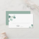 Placeringskort från elegant bröllop med enkel utformning med vattenfärg som är målad eukalyptus grey i det övre lämnat hörnet och i det nedre hörnet av högerna. Nedan är linjer för att skriva gästernas namn och bordsnummer. Baksidan har namn och bröllop-datumet över en matchande skugga av medelstor grönt. De här botaniska bröllop placerar kort med en modern tvist är perfekt för vår eller sommar-bröllop.