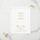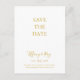 Detta enkla eleganta guld spara datum postkort är perfekt för ditt moderna minimalistiska vita och gyllene bröllop. Designen har minimal modern guldskrift tillsammans med formell kalligrafi. Behåll det som det är, eller välj att anpassa det med din egen konst eller foton!