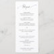 Klassisk vit bröllop-meny med sidhuvudet i ett känsligt skript. En enkel layout utan någon grafik gör detta till en elegant och tidlös design, perfekt för ett formellt bröllop.