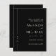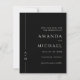 Det här klassiska svarta bröllop spara datum-kortet är enkelt, elegant och smakfullt och har en tunn linje gräns längs det lämnat kant med briden och triomens monogram som inledning. En kombination av teckensnittet för tidslinslös elegant parad med ett traditionellt skriptteckensnitt ger en enkel elegans till designen. Du kan lägga till, ta bort eller justera textens placering till kostym efter dina behov. Den ständigt populära svarta bakgrunden med svartvit text ökar den här designens renaste enkelhet. Dessa Spara datumet finns i både tryckt och papperslös digital-hämtningsform.