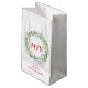 Elegantens julklapp med "JOY" omgiven av en grön krans tillsammans med din familj namn i rött. De här presentpåsarna i helgdag kommer säkert att göra julklapparna ännu mer attraktiva.
