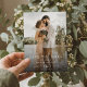 Enkelt modernt bröllop spara datum med fullt foto och elegant typografi.