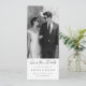 Bestäm datumet på ditt sätt. Det här fotot sparar datumet enkelt och skarpt med ren skrift, en svart-vit look och en hög bokmärkesform som sticker ut. Det är en souvenir som dina gäster faktiskt vill behålla. För par som gillar saker riktiga, moderna och enkla.