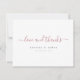 Denna enkla och chic bröllop tack-kortsmall har en fräsch modern look. Standardformen är skarpa hörn, men rundade hörn fungerar också bra med denna design, så kolla in den och se vilken stil som passar dig! Vi har gett denna minimalistiska design en touch av panache med "kärlek och tack" i ett flödande modernt teckensnitt och markerat det i en elegant nyans av roséguld som lyckas vara både elegant och livlig samtidigt. Vi älskar den stiliserade, långsträckta svängen i båda ändar av designen. Du kan enkelt redigera texten för att passa din smak, och du kan också ändra teckensnitt och färg på texten. Du kanske till exempel väljer ett annat format för dina namn, som "Herr och fru......" eller dina förnamn och efternamn, osv. Eller så kanske du ändrar