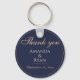 Enkel Elegant Mörk blått Bröllop Tack för nyckelkedjan. Den här eleganten är en underbar bröllopsförmån för dina gäster. Mörk blått bakgrund med text i ett modernt skript. Du kan enkelt anpassa all text - anpassa den med namn, namn, bröllop och annan text.