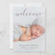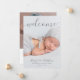 Vi introducerar ett vackert och enkelt födelseannons, perfekt för att välkomna din nyfödda. Framsidan av kortet har ett fullständigt foto med "Välkommen" i stor script-typografi högst upp. Barnets namn, födelsedatum och -tid samt vikt är elegant överlagda på fotot i en blandning av script- och seriffont, alla i grått, även om färgerna kan anpassas efter dina önskemål. Baksidan innehåller ett mindre foto, tillsammans med ett hjärtligt tackkort och föräldrarnas namn eller ytterligare information om ditt barn eller graviditet. Denna könsneutrala design är idealisk för både pojke och flicka och finns tillgänglig både som tryckt kort och digital nedladdning, vilket gör det enkelt att dela din glädje med nära och kära via post eller elektroniskt. Enkel Elegant Nyfödd Foto Födelseannons För Nytt Barn Script Överlagd Text Tack Kort.
