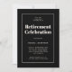 Enkelt, modernt och elegant, denna inbjudan från Pension-partiet har en sofistikerad vädjan. En svart bakgrund med ljusbrödtext som ramats in med en matchande tunn linje gräns ger information om din händelse med contemporaryns formatering. Den moderna textmallen är enkel att anpassa med din händelseinformation. Den här inbjudan är ett val för perfekten att fira pension i vilken gender som helst. Inbjudan kan beställas som utskrivna inbjudningar eller som papperslös digital hämtning, eller båda två!