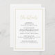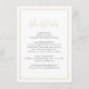 Romantisk bröllopsinformationskort med stilren skript och elegant typsnitt i guld, modern och enkel, perfekt för minimalistiskt formellt bröllop, traditionellt klassiskt bröllop, modernt enkelt bröllop.