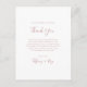 Detta enkla eleganta rosa guld tack mottagningskort är perfekt för ditt klassiska moderna minimalistiska rosa guld bröllop. Designen har klassisk vintage minimal chic samtida roséguld font och delikat romantisk formell kalligrafi. Det är utmärkt för vår-, sommar-, höst- eller vinterluxuösa bröllop. Behåll det som det är eller välj att anpassa det med din egen konst eller foton!