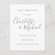 Designad för att samordna med vår Signatur bröllopssamling. Med signaturstil namn, detta eleganta grå och vita spara datum-kort kan anpassas med din speciella bröllopsdagsinformation i chic grå bokstäver. Designad av Thisisnotme©